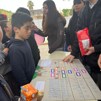 En el recreo del primer ciclo, el segundo medio junto a su profesora de matemáticas Mariella Duranti, compartieron tablas de conversión.